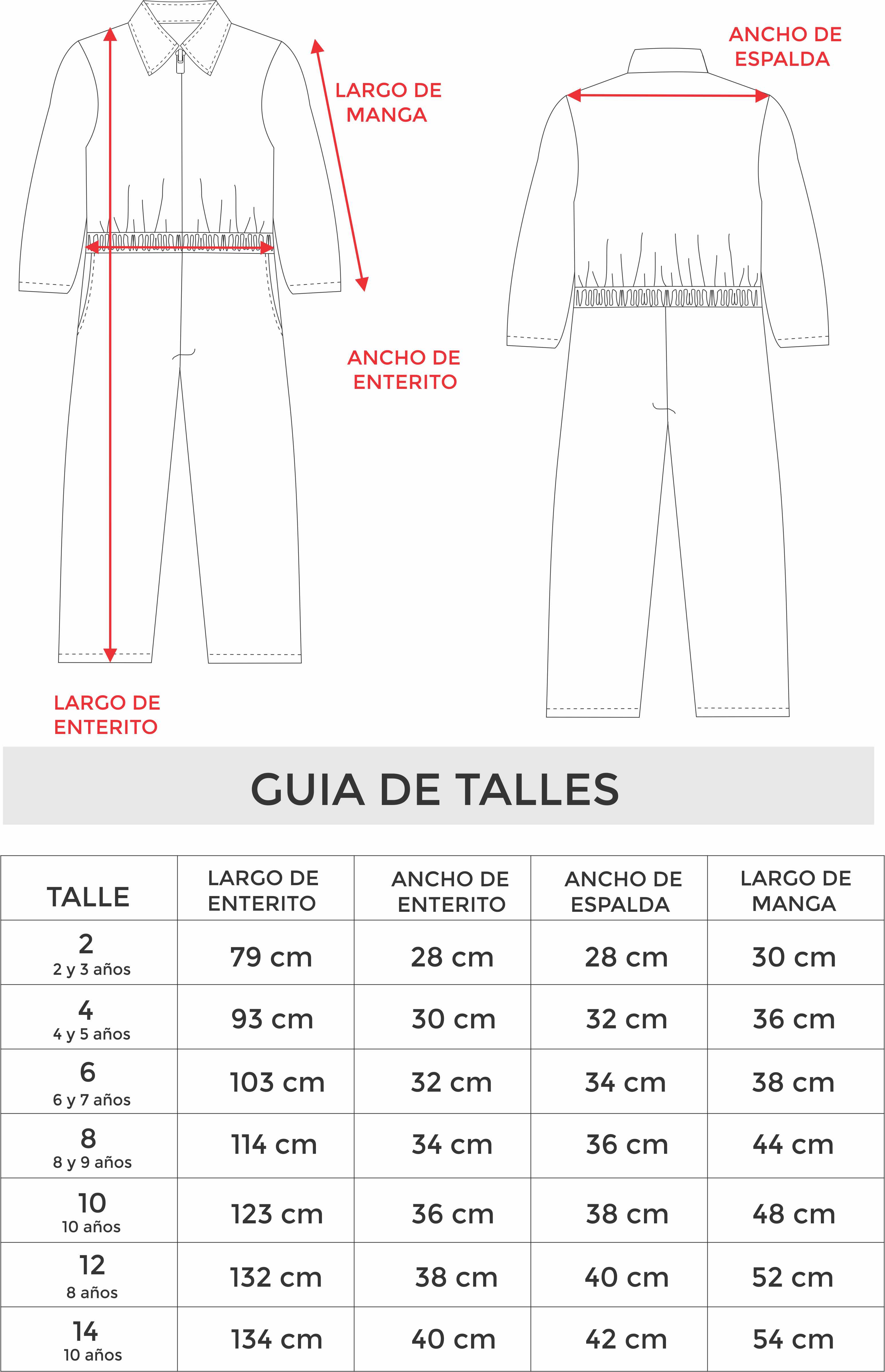 Talles 10, 12 y 14: Consultar medidas detalladas en la tabla de fotos.